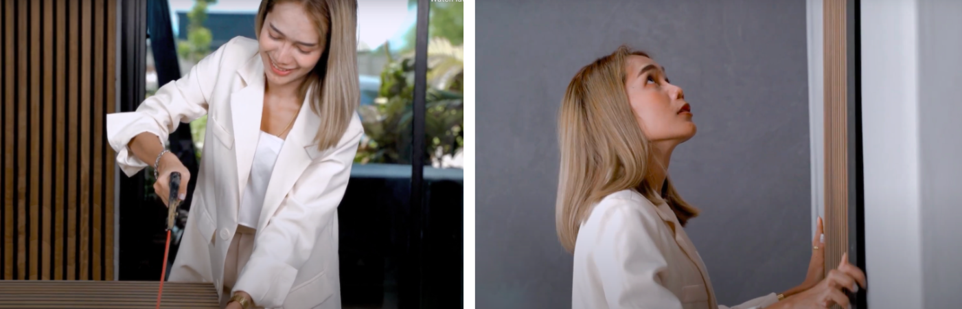 แผ่นไม้ระแนงอะคูสติก VERTiCO ทำให้การตกแต่งผนังเป็นเรื่องง่ายที่ผู้หญิงตัวคนเดียวก็ทำได้! ไม่ต้องกังวลกับการปิดพื้นที่บ้านหลายวัน แค่เปิดกล่อง ติดตั้งด้วยตัวเองแบบง่ายๆแบบงาน DIY ไม่มีเสียงรบกวน ไม่มีฝุ่นยุ่งเหยิง