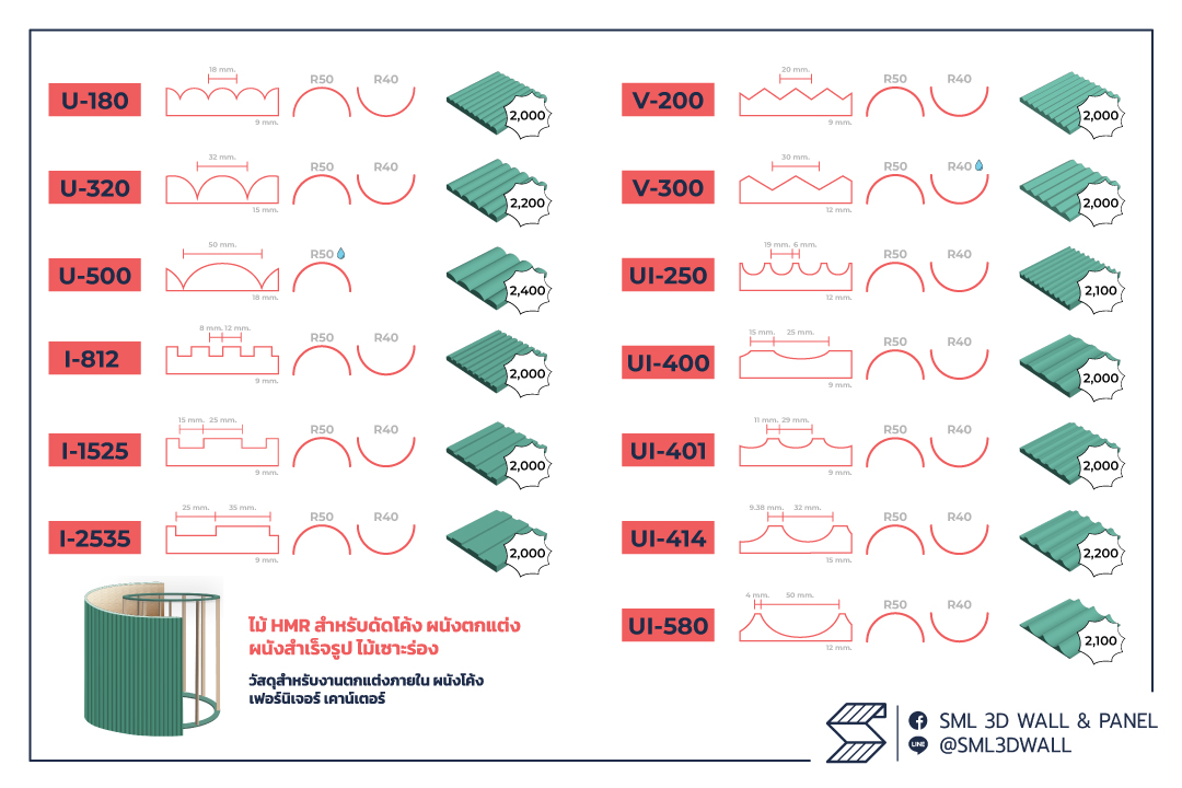 ถ้าใครกังวลว่าการหุ้มเสาจะยุ่งยาก ต้องทำโครงไม้หรือประกบแผ่นเยอะๆ เดี๋ยวนี้ไม่ต้องแล้ว เพราะ SML มี HMR เซาะร่องรุ่นดัดโค้ง ที่ออกแบบมาให้ติดตั้งกับเสาหรือเฟอร์นิเจอร์ทรงโค้งได้!