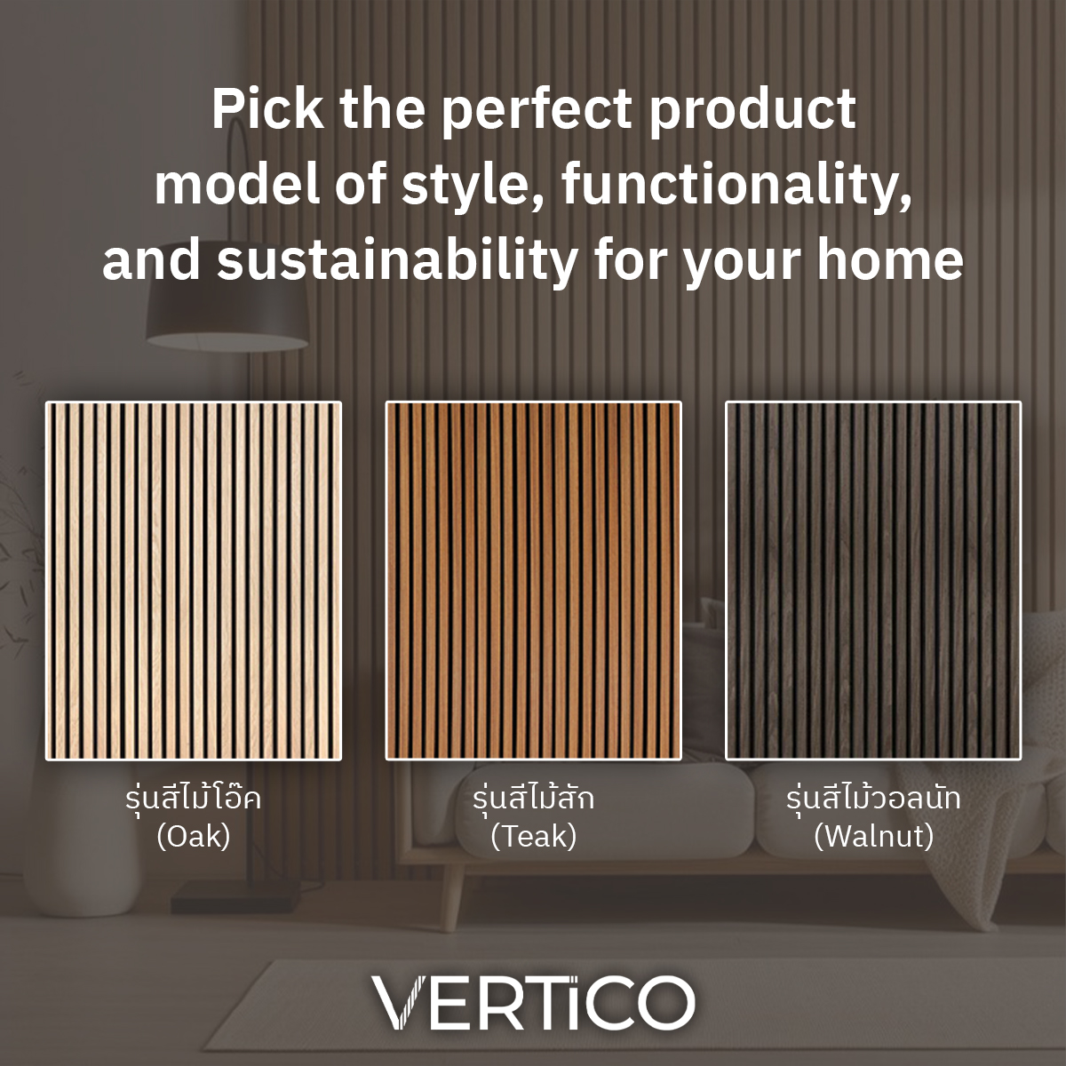 VERTiCO มีให้เลือก 3 สี ได้แก่ ไม้สัก ไม้โอ๊ค และไม้วอลนัท พร้อม 2 ขนาดมาตรฐาน คือ 60×120 ซม. และ 60×240 ซม. ให้เพื่อนๆเลือกใช้งานได้ตามความชอบ ความต้องการ และเหมาะกับพื้นที่ใช้งาน